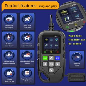 Diabit YM119 OBD2 Scanner Diagnostic Tool Enhanced Vehicle Code Reader Professional OBDII Diagnostic Code Reader Tool for Check Engine Light